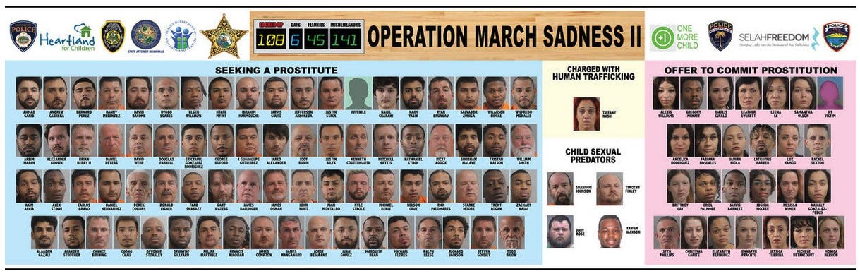 Here’s the report on the arrest of 108 people in Polk County, FL. In addition to the 4 Disney employees, a retired judge was also caught.